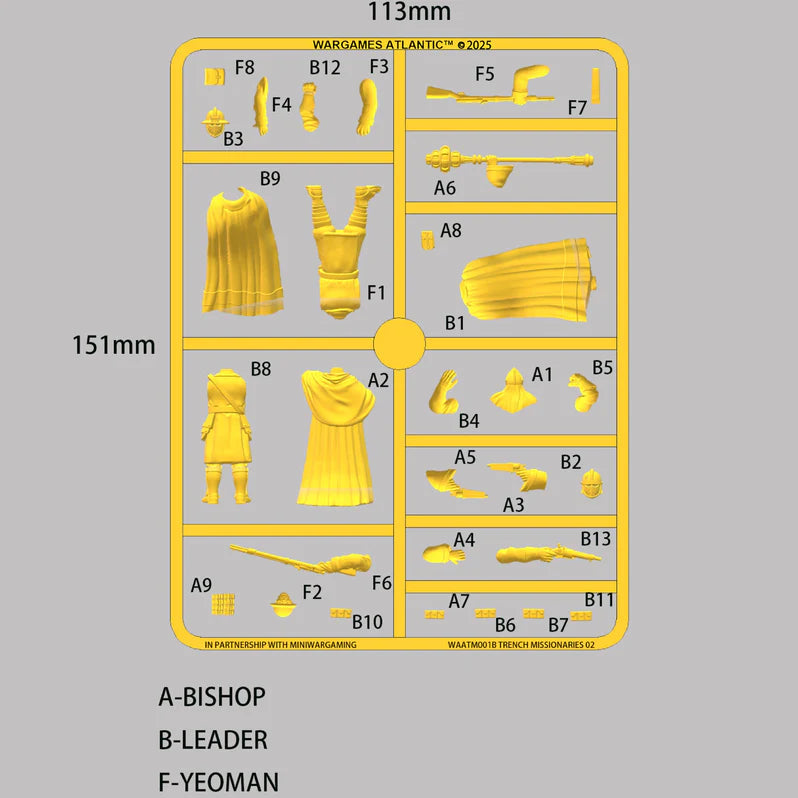 The Trench Missionaries are a faith-driven warband and are compatible for use in the world of Trench Crusade. Designed to proxy as New Antioch, these Mormon-inspired miniatures bring unique character and narrative depth to your tabletop battles. Each model captures the grim resolve of warriors who march into no man’s land armed with relics, rifles, and obedience with exactness. Perfect for collectors, painters, and gamers alike, the Trench Missionaries add a striking and thematic force to any army.